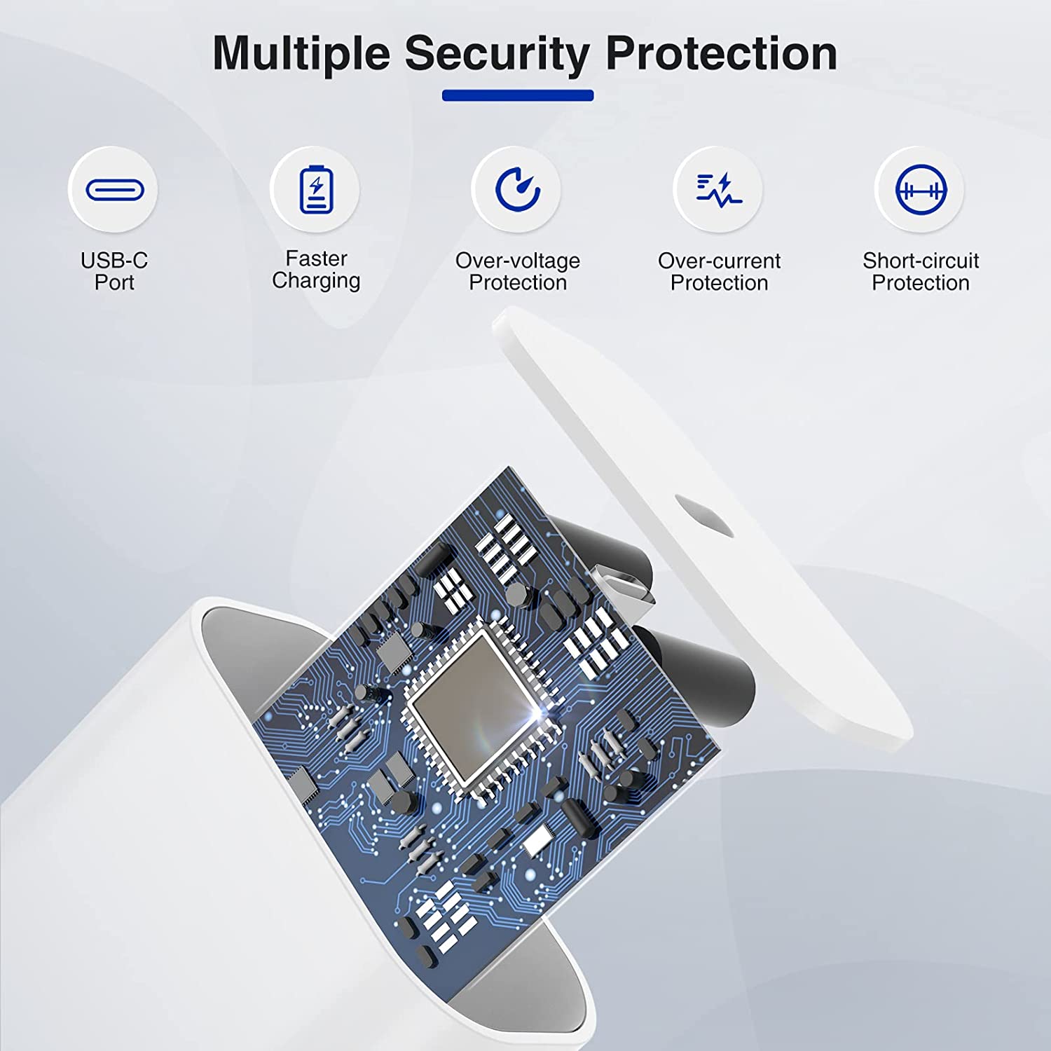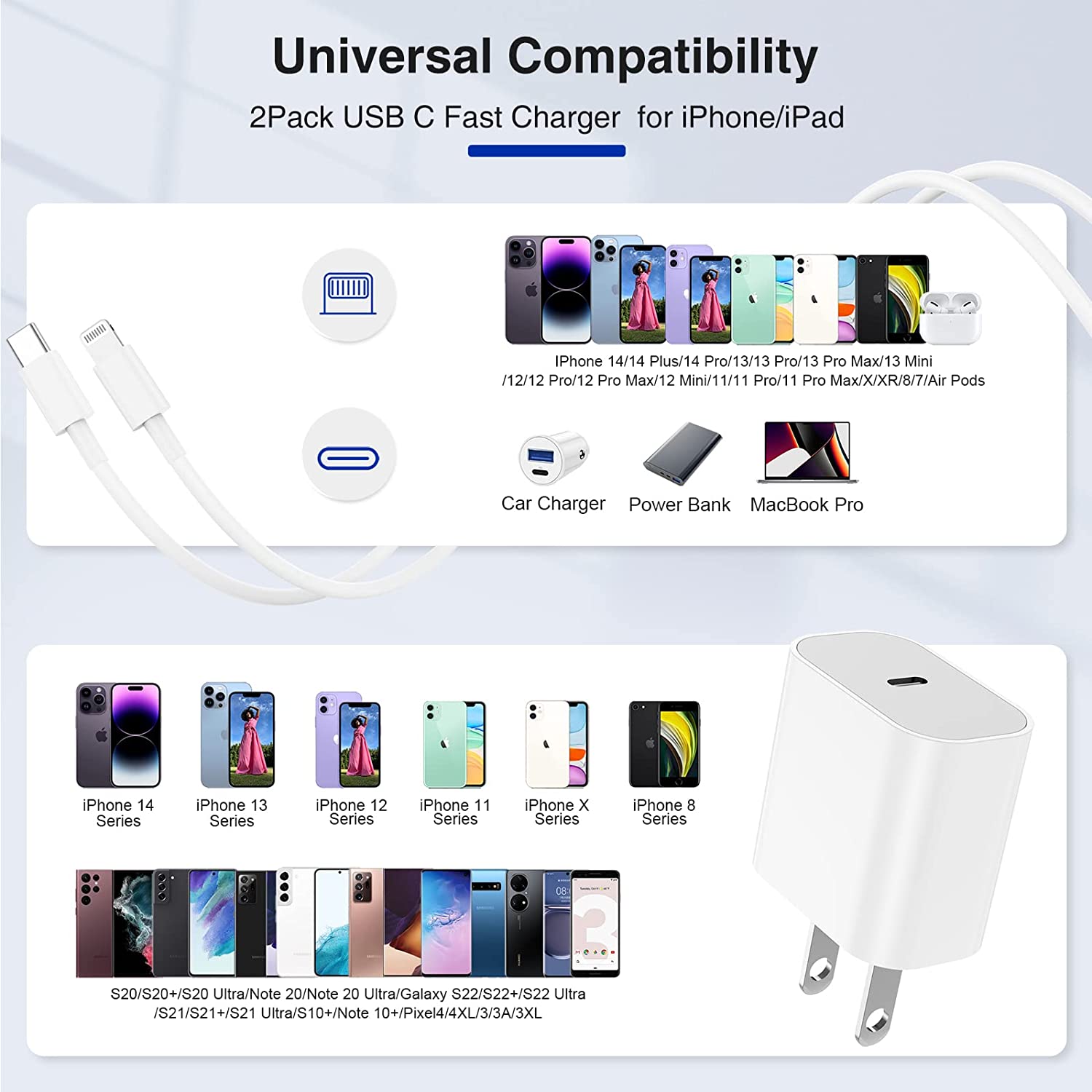 • [Quality Service] What you get: 2Pack iPhone Fast Charger Block and Pack USB C to lightning Cable 6FT. For your better shopping experience, we will provide a 12-month product guarantee service for the product. If the product fails, we will give you a replacement or refund.