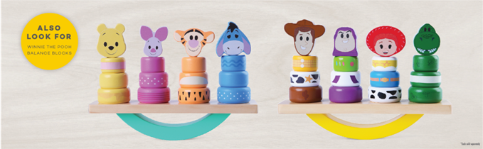 Spark imaginations and hours of creative play with the Toy Story Balance Blocks from Disney Wooden Toys. Featuring some of kids’ favorite Disney characters from Toy Story, this set include 16 building blocks plus balancing base to create each character in their classic look including Woody, Buzz Lightyear, Jessie, and Rex. Kids will love stacking the blocks and using the pedestal to balance all of Andy’s adorable toy friends! These wooden blocks encourage little ones to use their imagination during free play and helps develop fine motor skills. Build out a world of fun when you introduce this classic play experience into your child’s playtime, including wooden figures, blocks, balancing blocks, cars, trains, puzzles, and clutch toys. Collect both Disney Wooden Toys Balancing Blocks including Winnie the Pooh and Toy Story. Ages 18+ months