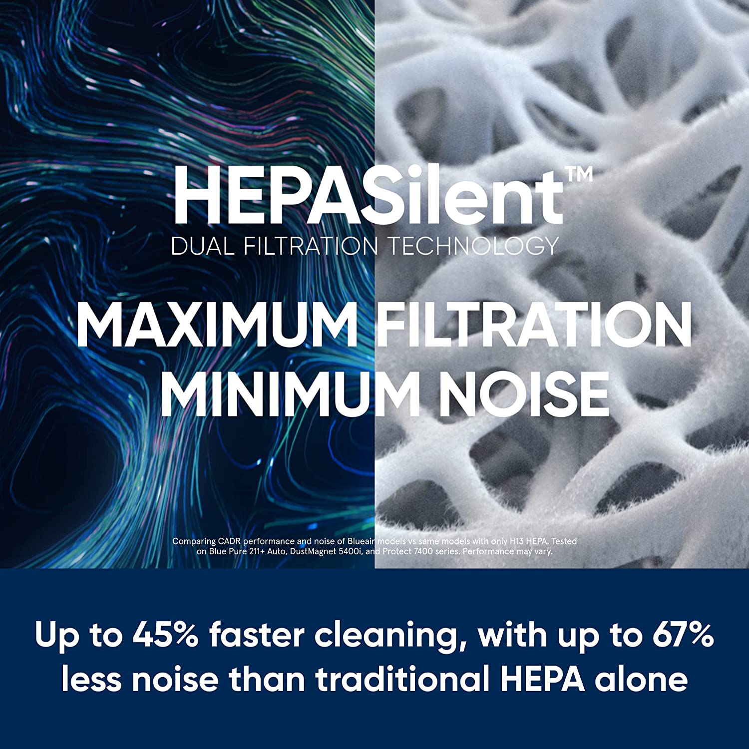 • CLEAN AIR IN MINUTES: Blueair’s HEPASilent dual filtration delivers up to 45% faster cleaning & up to 67% less noise than traditional HEPA filtration alone; Quickly cleans 357sqft large room in about 12.5 min or up to 1,713sqft XL space in 60 min, on high