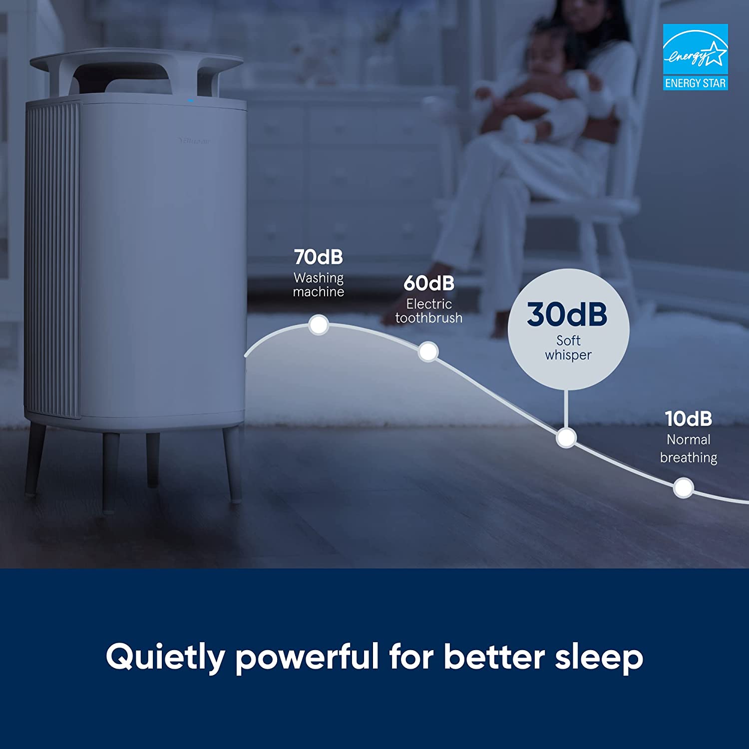 • ONE OF THE QUIETEST AIR PURIFIERS: Quieter (30 dB) than a whisper on low; ENERGY STAR rated - uses less energy (7W) than an LED lightbulb on low so it’s kind to your wallet and the planet