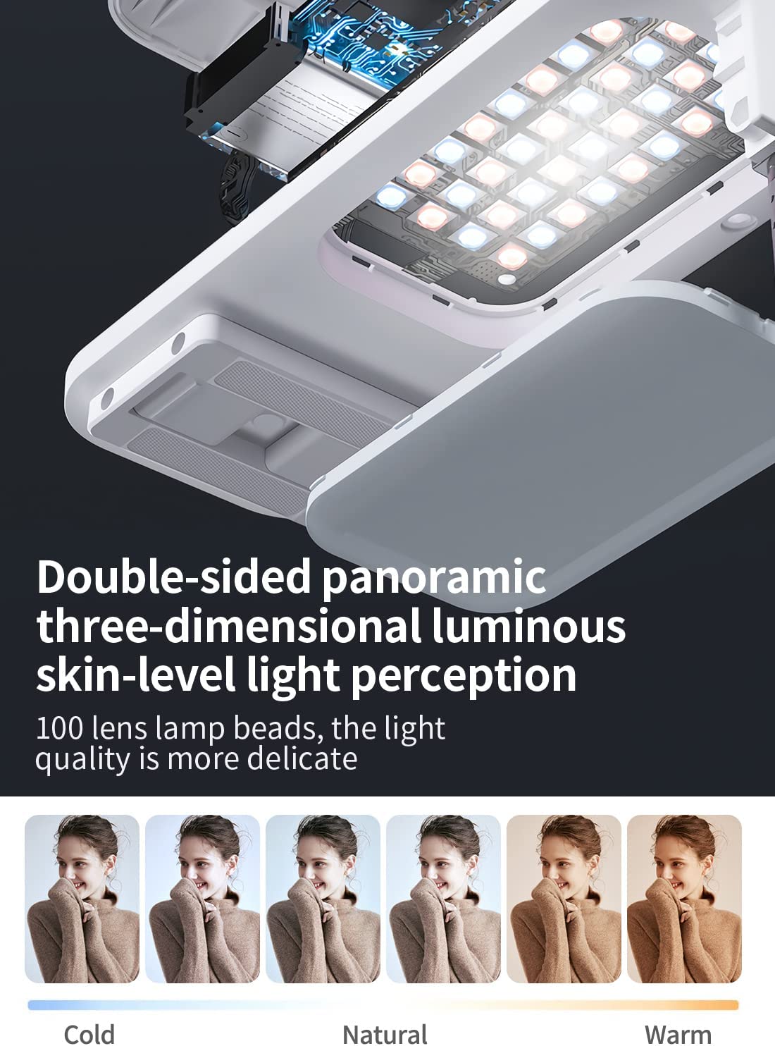 【Three-Color Fill Light】 Unique mini box-shaped ring light with 3 color lighting modes including warm light (2800-3200K), cool white (5000-5500K), equipped with 100 energy-saving LED light beads, delicate light sense. It has 7 light modes, warm and cold light effects, and three-dimensional fill light. It is easy to adjust the brightness by remote control. Display your beauty in the best possible light.