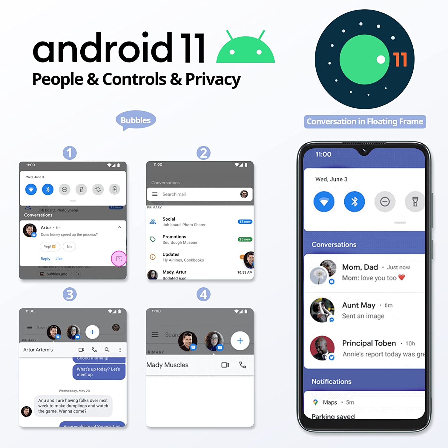 • ?Android 11, smooth and concise?Cell phone unlocked Blackview A55 is equipped with Android 11 system, and the privacy protection function strictly restricts applications from accessing the phone's microphone, camera, and geographic location. Users can quickly switch between applications with just a swipe in gesture navigation. Additionally, the new Google Authentication system has smoother transition animations and more privacy options in app configuration.