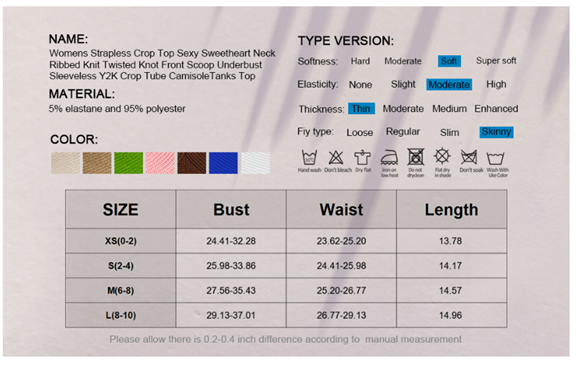 • Womens Crop Camis Feature: Strapless, Sleevess, Twisted Knot Front,Ribbed Knit,Sweetheart Neckline,Scoop Underbust, Keep you trendy, flattering and eye-catching at any time and anywhere.