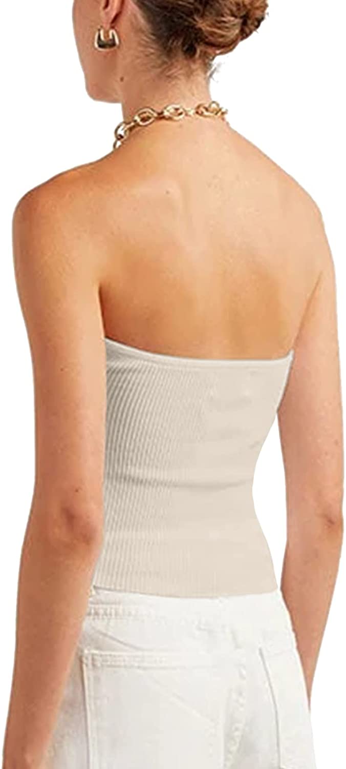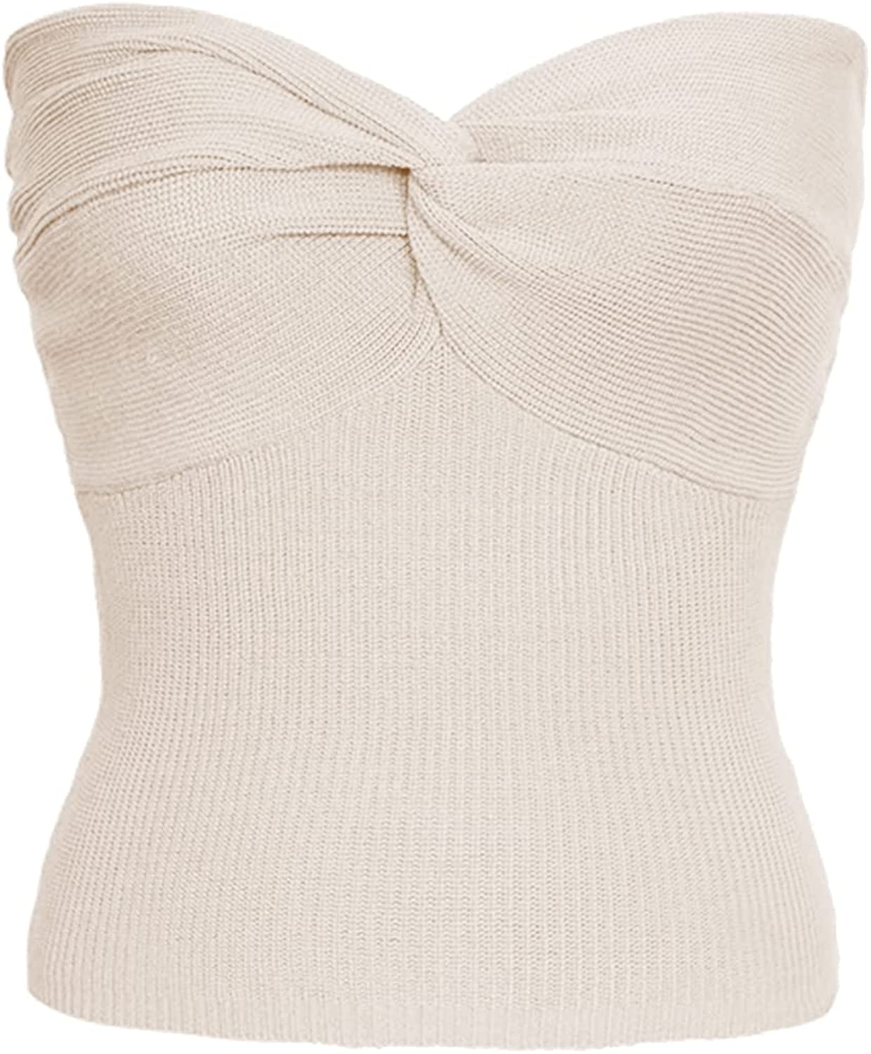 Womens Strapless Crop Top Sexy Sweetheart Neck Ribbed Knit Twisted Knot Front Sleeveless Y2K CamisoleTanks Top