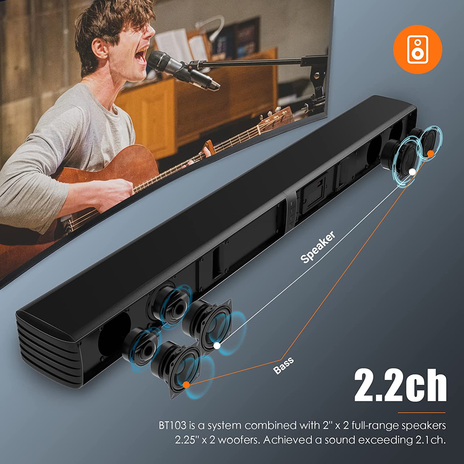 Saiyin Sound Bars for TV, Wired and Wireless Bluetooth 5.0 TV Stereo Speakers Soundbar 32’’ Home Theater Surround Sound System Optical/Coaxial/RCA Connection, Wall Mountable
