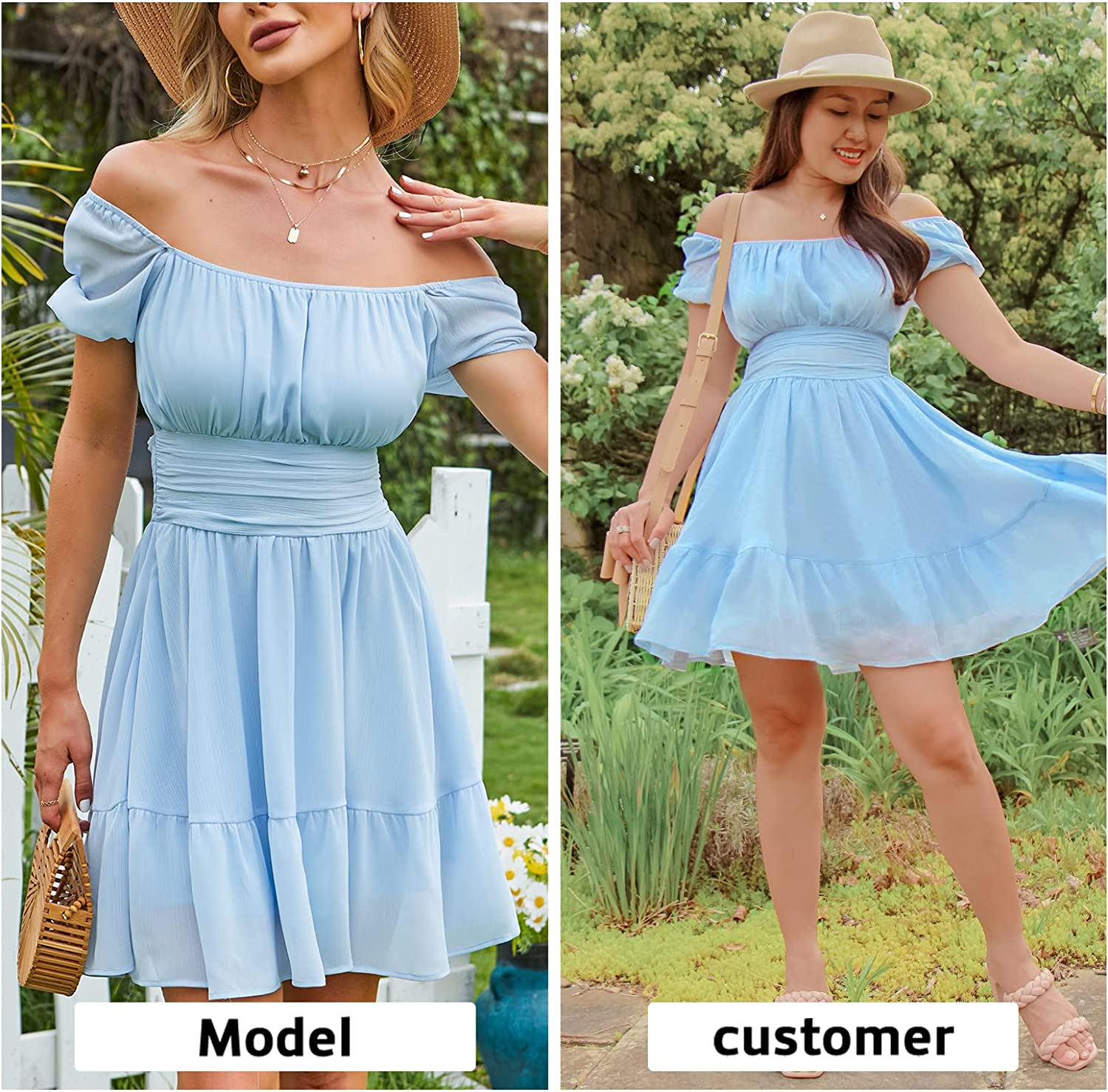• Feature: With elasticity in neckline and waist, the smocked dress flatters most body shapes for a comfortable fit. Plus, the dress features an open-back framed with adjustable ties, showcasing your beautiful back while having a comfortable feeling of wearing. The ruffle frill hem combined with off shoulder or square neckline, sexy design serves as a feminine touch to your outfit and elevates your look.
