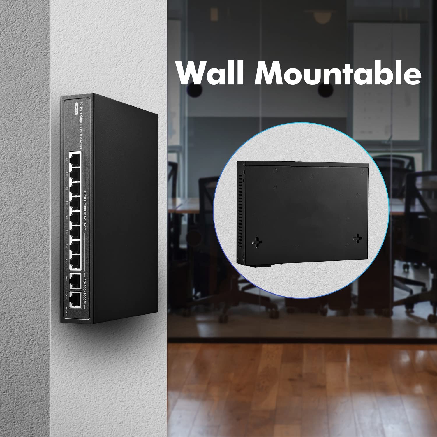 • Widely Used: metal case, fanless silent, double side vents; with hanging ears, support desktop and wall mounting. Stable POE and switching chips, 2 uplink, can be used in various networks of home, office, project and business.
