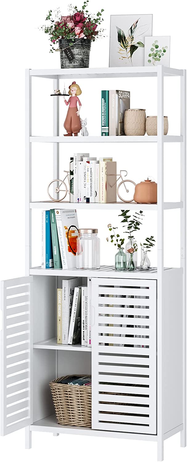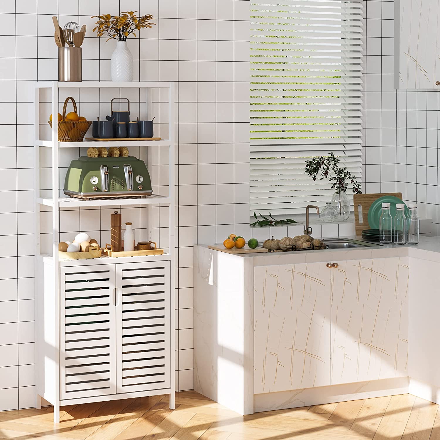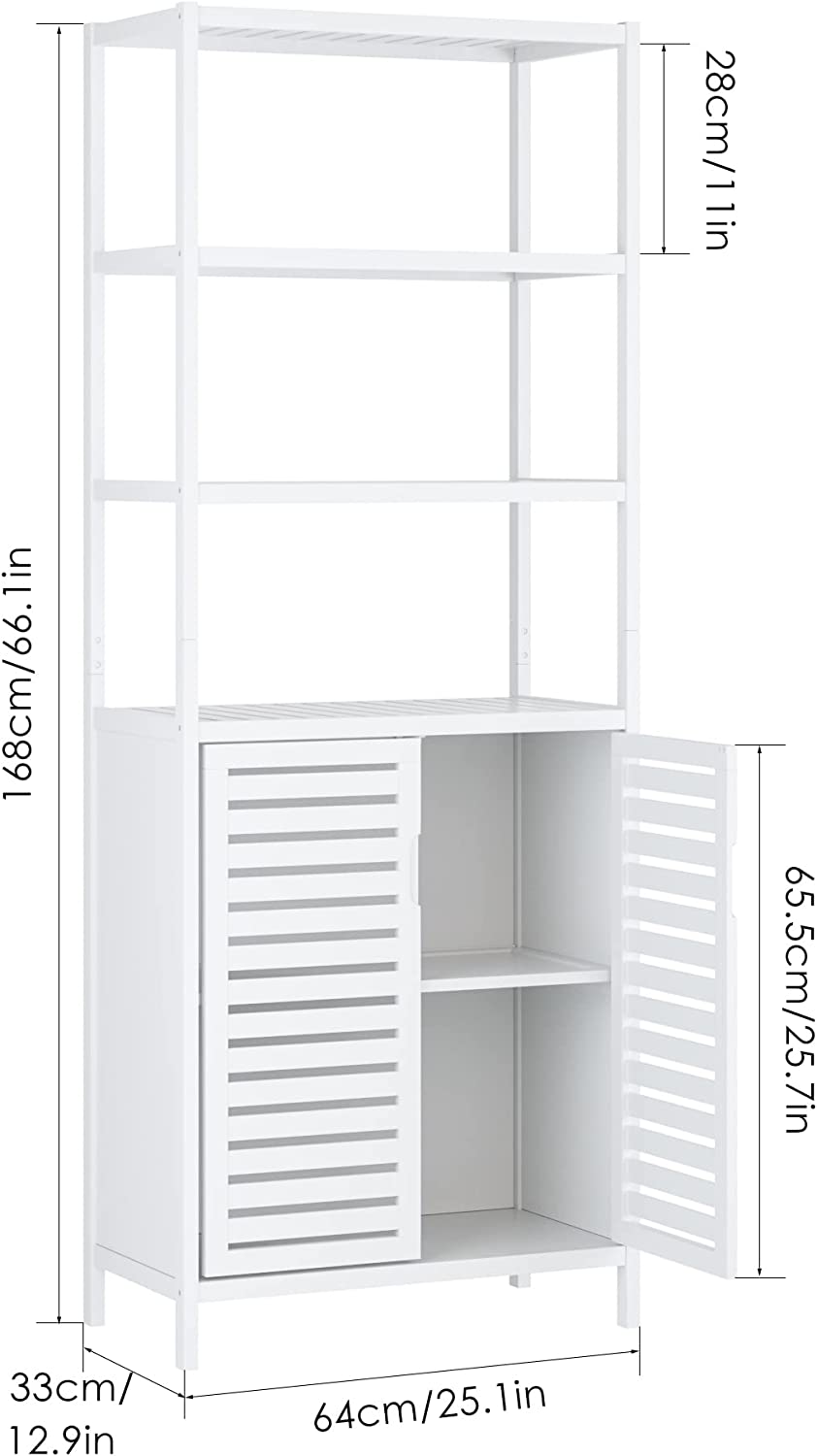 HIFIT Tall Bathroom Storage Cabinet, Bamboo Storage Cabinet with 2 Doors and 3 Tier Shelves, Bathroom Cabinet Freestanding, 67”H Bamboo Tall Cabinet for Bathroom Living Room Kitchen, White