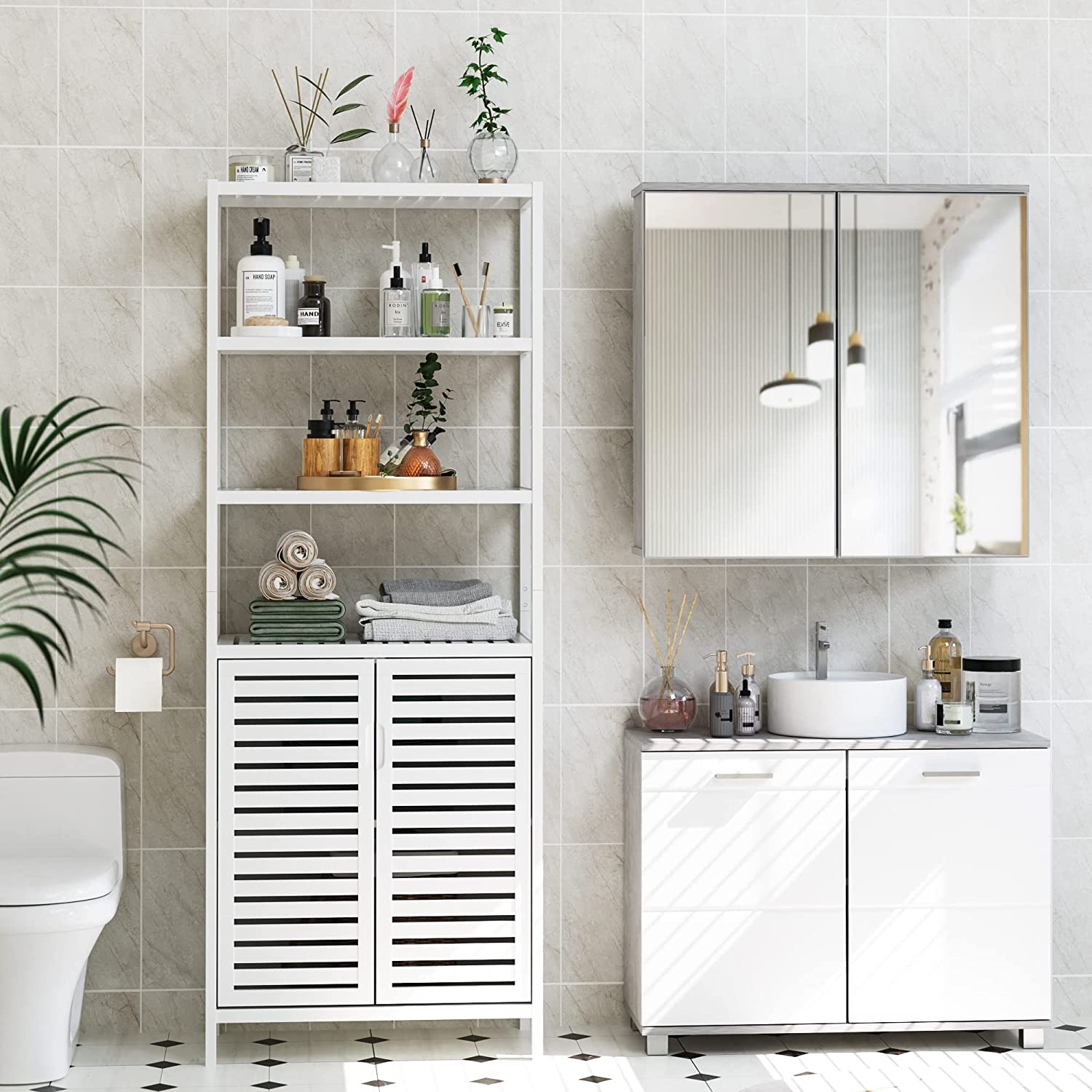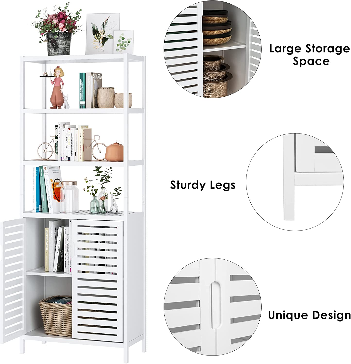 • AMPLE STORAGE SPACE: This bathroom storage cabinet is an integrated cabinet with 4 open shelves and a double-door storage cabinet that provide ample storage space for your daily
