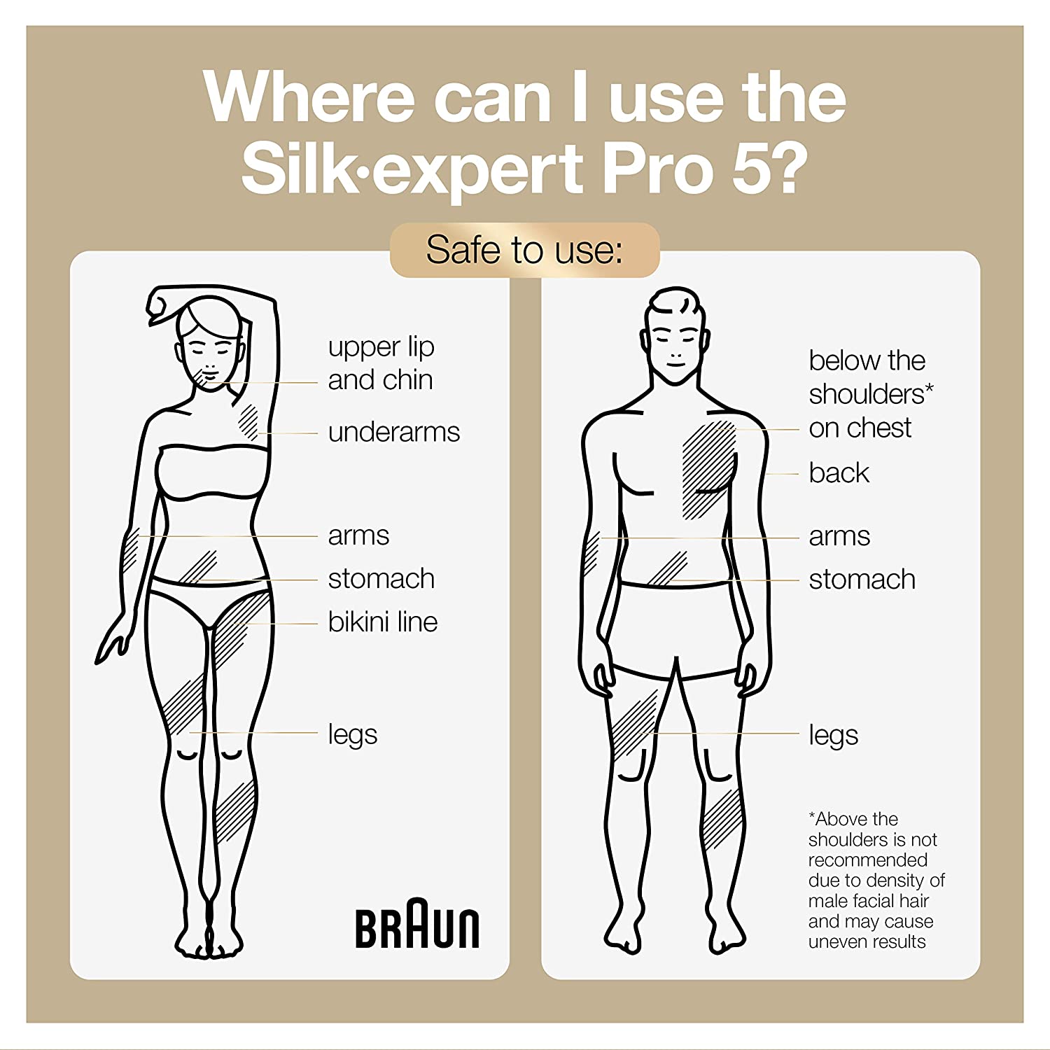 Silk·expert Pro 5 is Braun’s best IPL. This isn’t a laser hair removal device but instead uses advanced IPL technology to give you up to 6 months of smooth skin from home, with visible hair reduction in 4 weeks*. SkinPro 2.0 (SensoAdapt) automatically adapts to your skin tone, optimizing the power for the perfect balance between fast results and gentleness on skin. 2 sensitive modes ensure your skin’s comfort. Up to 125 flashes per minute enables less missed spots when gliding on your skin. *74% hair reduction after 12 weekly sessions (combined value for bikini, leg, axilla). Individual results may vary. Box Contents: 1 × Silk·expert Pro 5 with standard head 1 × Additional precision Head 1 × Venus Extra Smooth Swirl razor 1 × Soft pouch