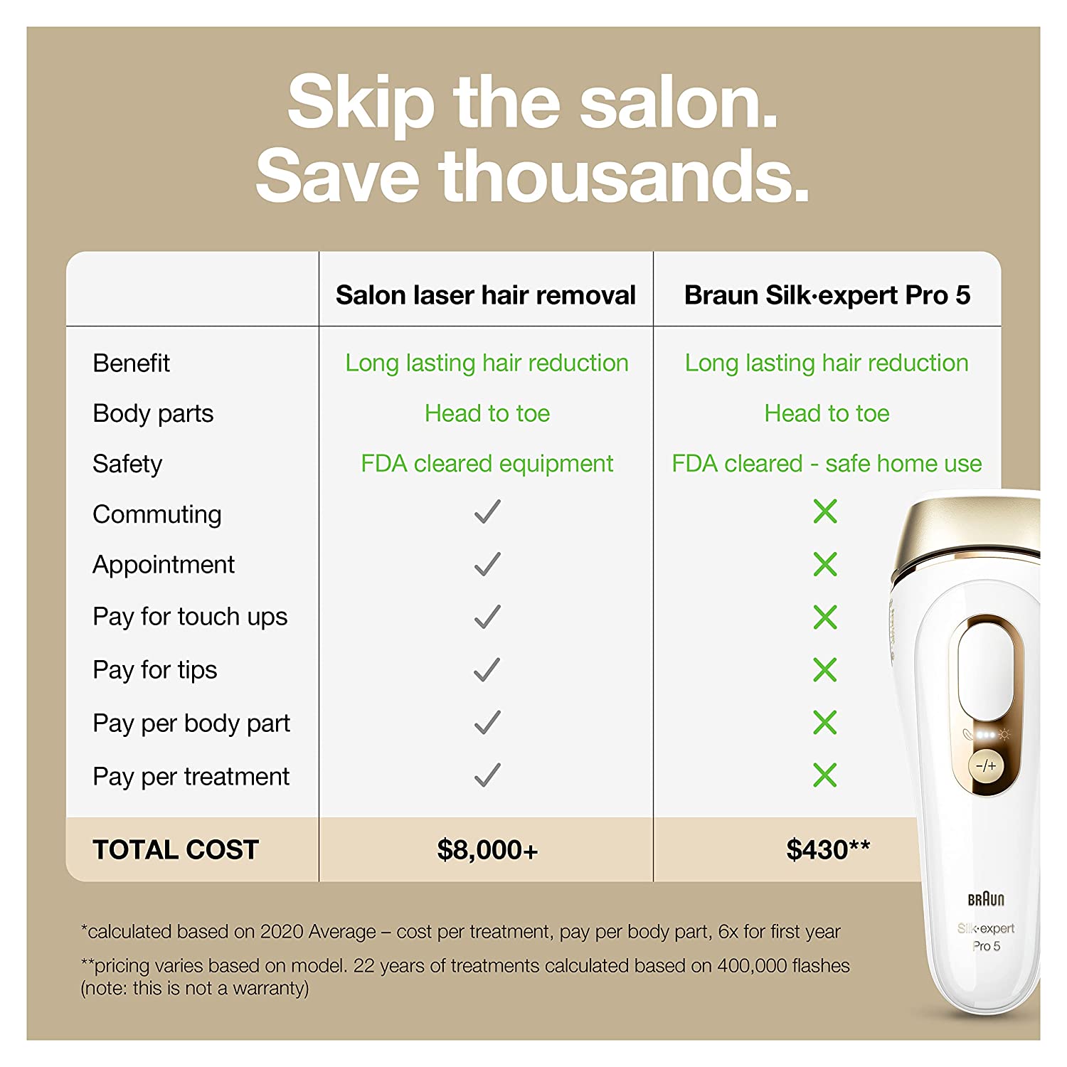• Get up to 6 MONTHS OF SALON-LIKE SMOOTH SKIN from home. Visible hair reduction in just 4 weeks*. *74% hair reduction after 12 weekly sessions (combined value for bikini, leg, axilla). Individual results may vary.