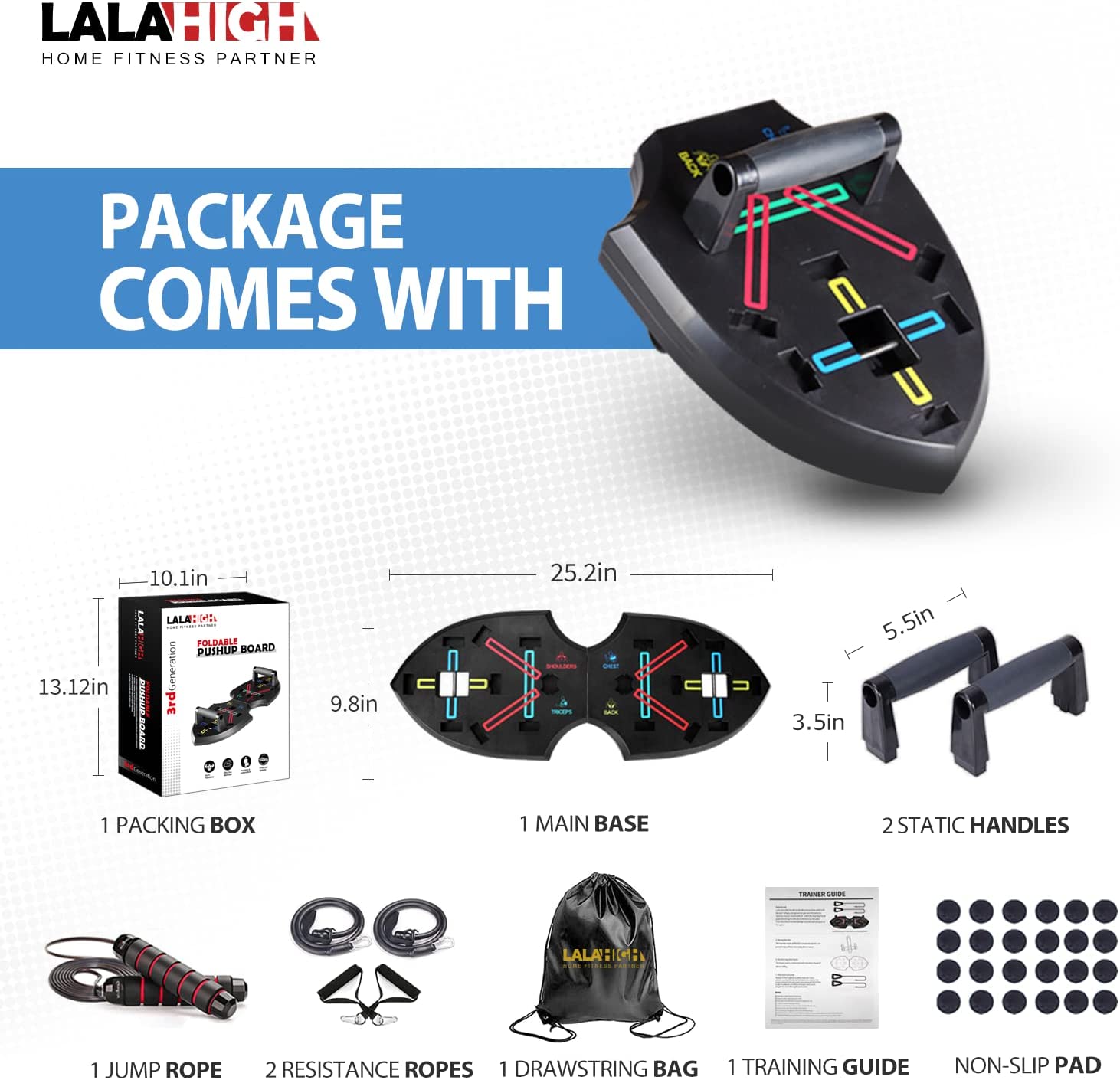 LALAHIGH Push Up Board, Upgraded 15 in 1 Push Up Bar, Premium ABS Pushup Stands w/ Drawstring Bag, Professional Pushup System for Chest, Tricep, Back, & Abs Workout, Portable Home Strength Training Eq