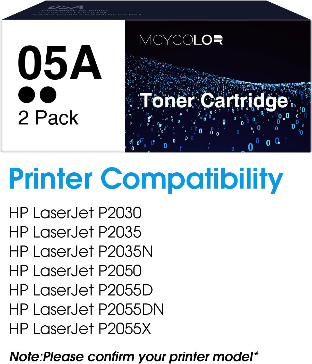 MCYCOLOR 05A Toner Cartridge High Yield Compatible for HP CE505A Replacement for HP P2035 P2035N 2035N P2055DN 2055DN P2030 P2050 P2055X P2055D Printer (2 Black)