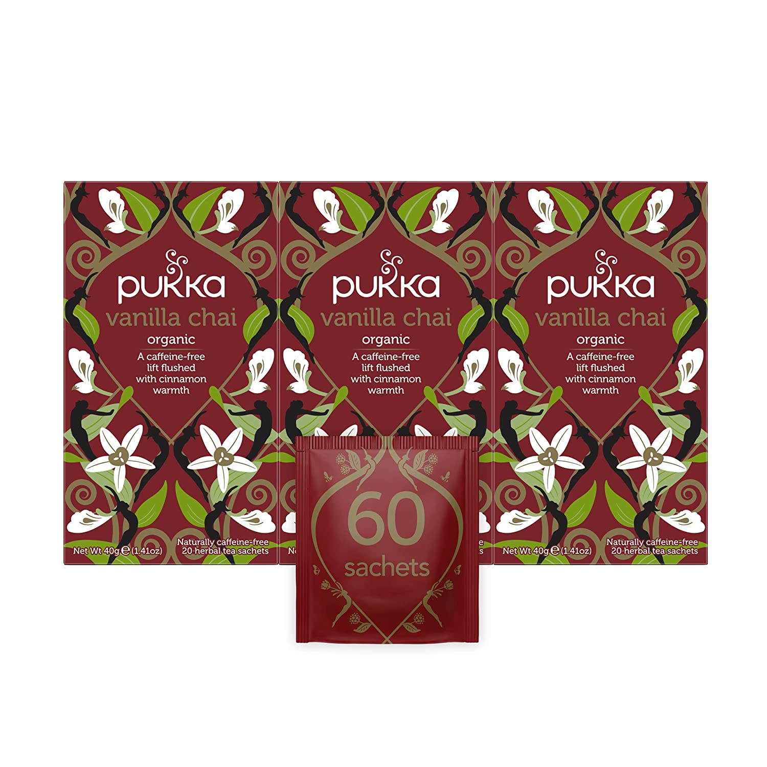 Pukka Organic Tea Bags, Vanilla Chai Herbal Tea with Cinnamon & Cardamom, Perfect Caffeine-free Pick-me Up, 20 Count (Pack of 3) 60 Tea Bags
