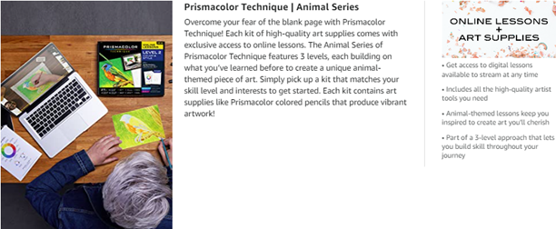 Learn art at your own pace from the comfort of home with Prismacolor Technique. Each Prismacolor Technique set features a unique coupon code for access to digital art lessons you can’t get anywhere else. Instructed by Prismacolor artists, each lesson will teach you how to use the professional-grade art supplies included in the set to create a piece of art you will cherish. The Level 3 Animal Drawing Set is designed for those who have built up some skill and confidence in art. You’ll learn how to take your skills to the next level by recreating any animal photo using reference grids. The set features Prismacolor colored pencils with rich cores for smooth color laydown and an artist roll case so you can store and carry your art tools. You’ll also receive an illustration marker, a clear reference grid overlay, a graphite pencil, a colorless blender, an eraser, a drawing pad, a mini sharpener, a drawing template with grid, a set of instructions, and hours of online content to learn at your convenience!