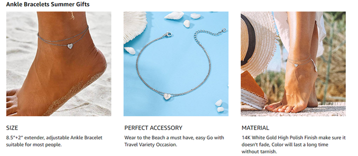 • SIZE: 8.5”+2” extender, adjustable Ankle Bracelet suitable for most people.