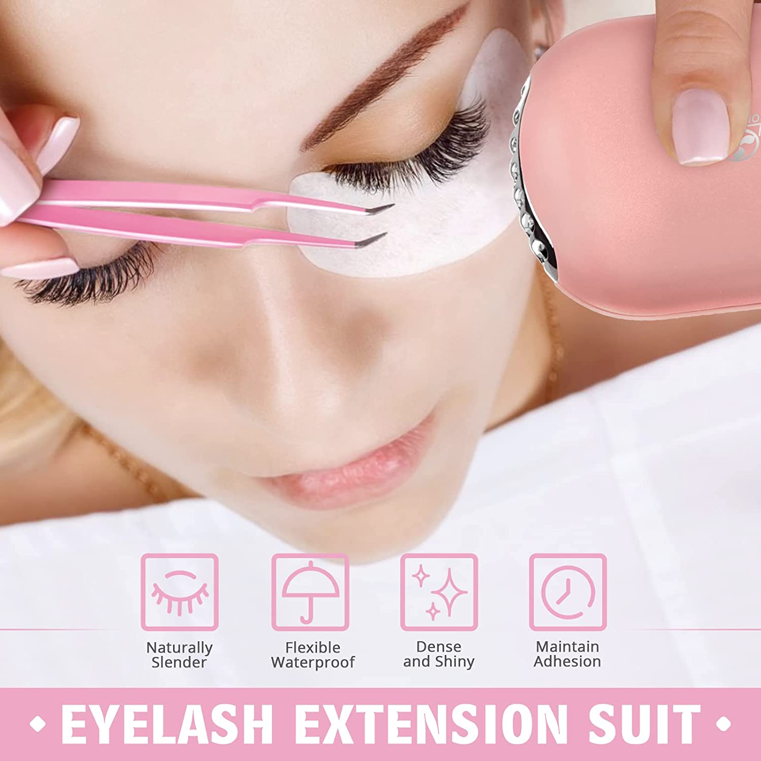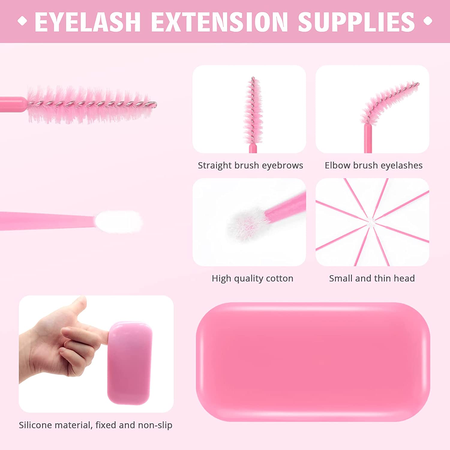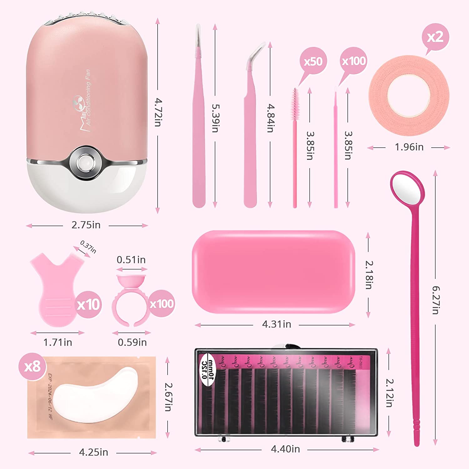 • ? Pink Eyelash Extension Supplies -- Buqikma lash extension kit include portable air conditioner cooling fan,100PCS glue ring,1PC lash mirror,2PCS lash tape,50PCS Mascara Brushes,100PCS cotton wands,8PCS eye gel pads,10PCS Y-brush,2PCS tweezers,10mm false indivisual eyelash and a silicone pad.
