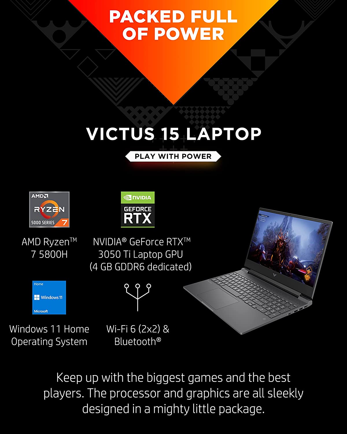 HP Victus 15.6" Gaming Laptop PC, NVIDIA GeForce RTX 3050 Ti, AMD Ryzen 7 5800H, Refined 1080p IPS Display, Compact Design, All-in-One Keyboard with Enlarged Touchpad, HD Webcam (15-fb0028nr, 2022)
