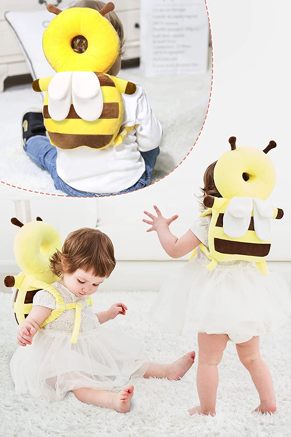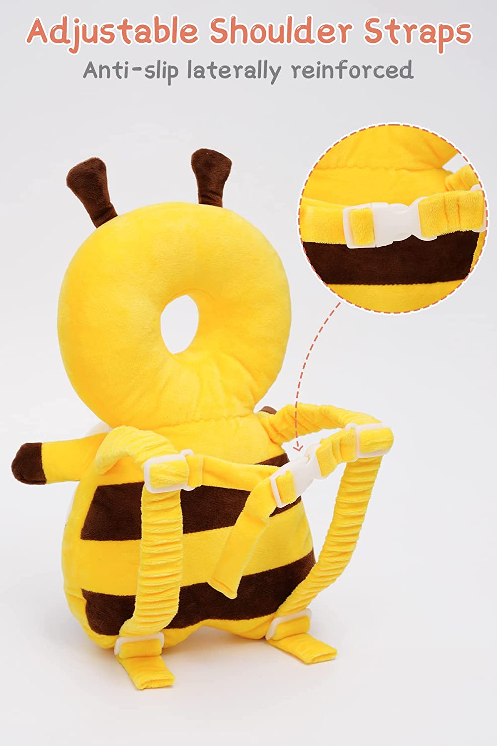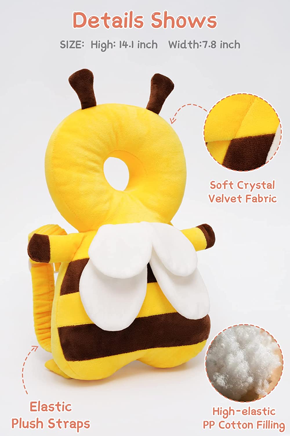 Baby Head Protector Cushion Toddler Head Protection Pillow Baby Backpack with Knee Pads&Anti-Slip Socks (Bee - Crystal Velvet)
