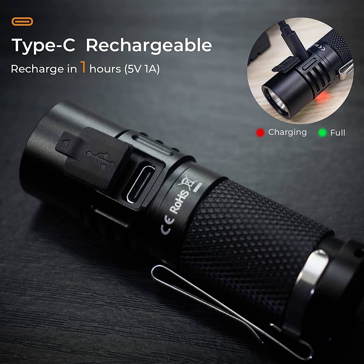 • Tough & Reliable: with USB cover, IPX8 waterproof SC21 flashlight survives under water (not for diving). Clip it on your cap, enjoying fishing or boating. No need to worry about dropping it in water.