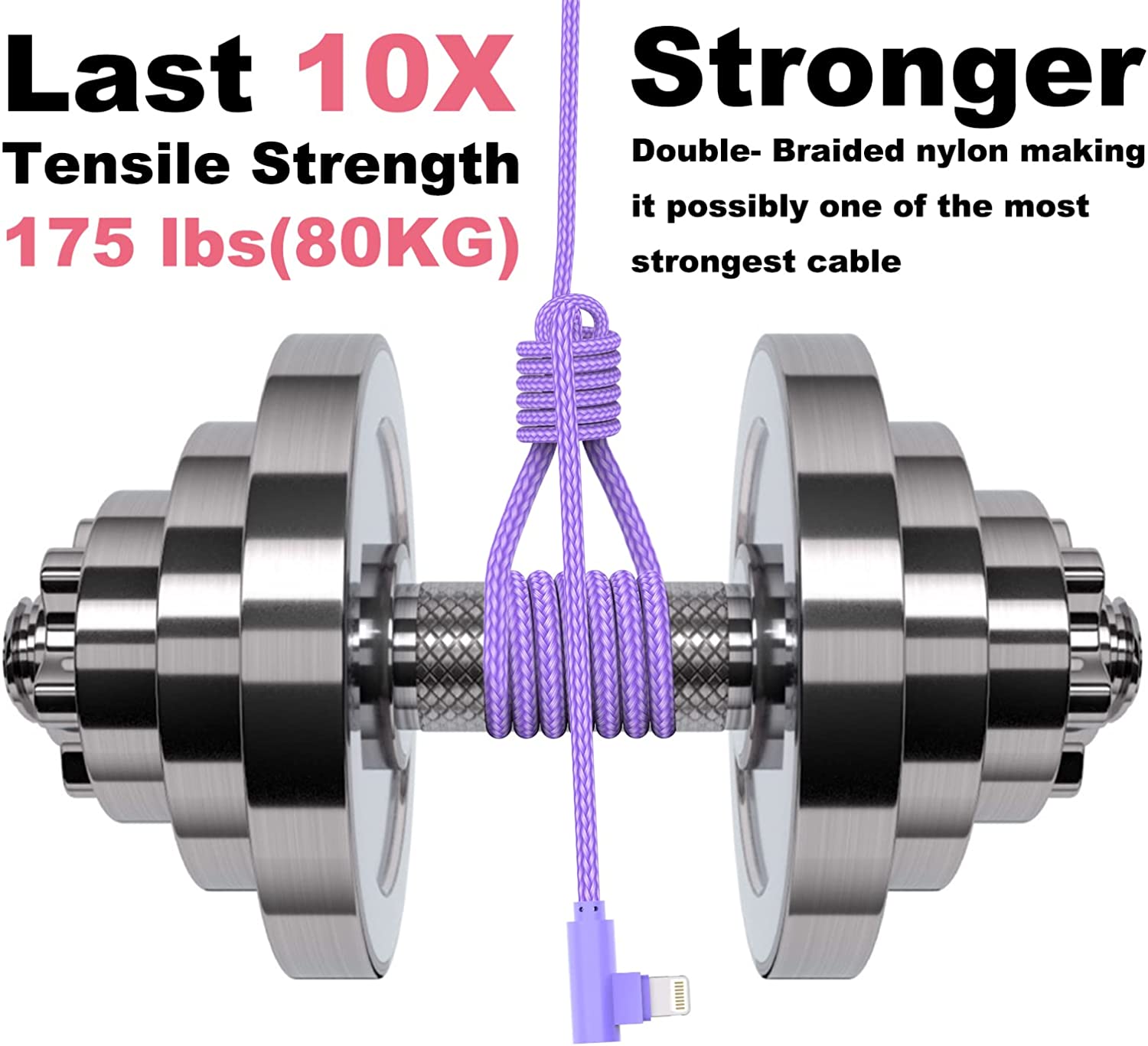 Lightning charger cable professional 90-degree angle design allows you to easily hold the phone, hold it for a long time, insert and remove it. It is more convenient to play games or watch videos when charging.