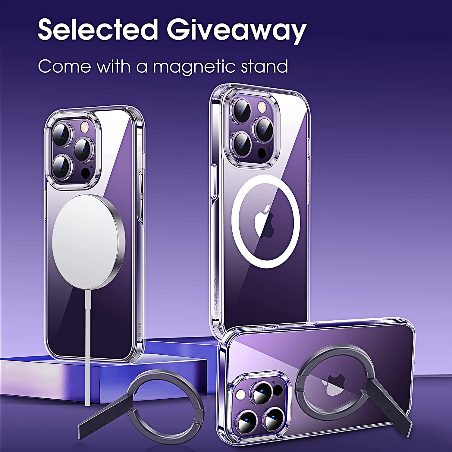 CASEKOO for iPhone 14 Pro Max Phone Case Clear with Removable Magnetic Ring Stand [Compatible with MagSafe] iPhone 14 Pro Max Case Shockproof Protective Slim Thin Cover for Women Men 6.7 inch, Clear