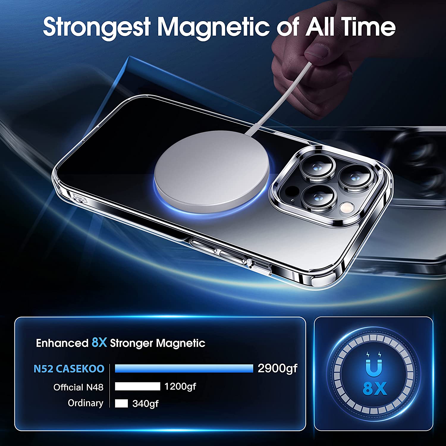 • 【Compatible with All MagSafe Accessories】The magnetic ring on the back of this clear magnetic phone case fits all MagSafe accessories. Magnetic strength up to 14N, more than the original phone case. Perfectly compatible with Magsafe charger, battery pack, iPhone wallet, MagSafe car phone holder, and more.