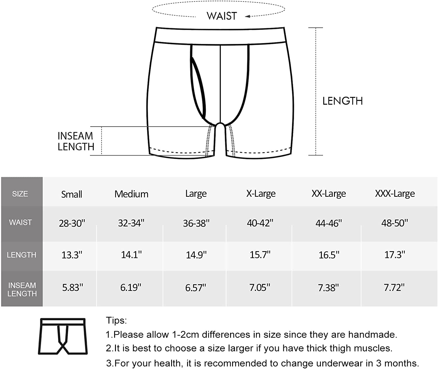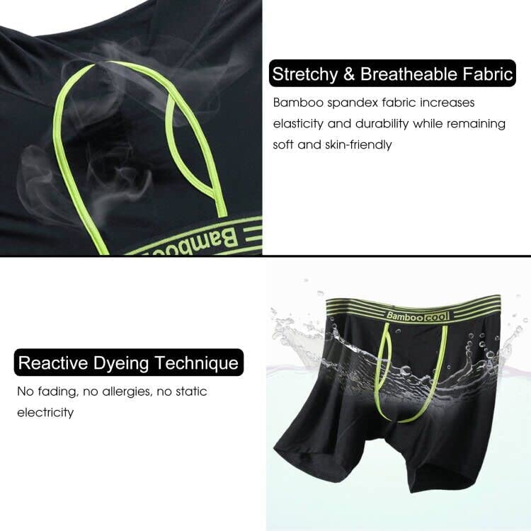 • 【NO-RIDE-UP LEG,BREATHABLE】: This fabric is 92% Bamboo Viscose & 8% Spandex, which is a lightweight, breathable, stretchy pair that won't fade or shrink fabric. Bamboo fabric has a natural moisture absorption and perspiration function, its air permeability is 3 times that of cotton.This is a kind of long leg boxer underwear.The design of lengthen the leg will more securely wrap the important parts of men, and effectively reduce the friction between the legs.