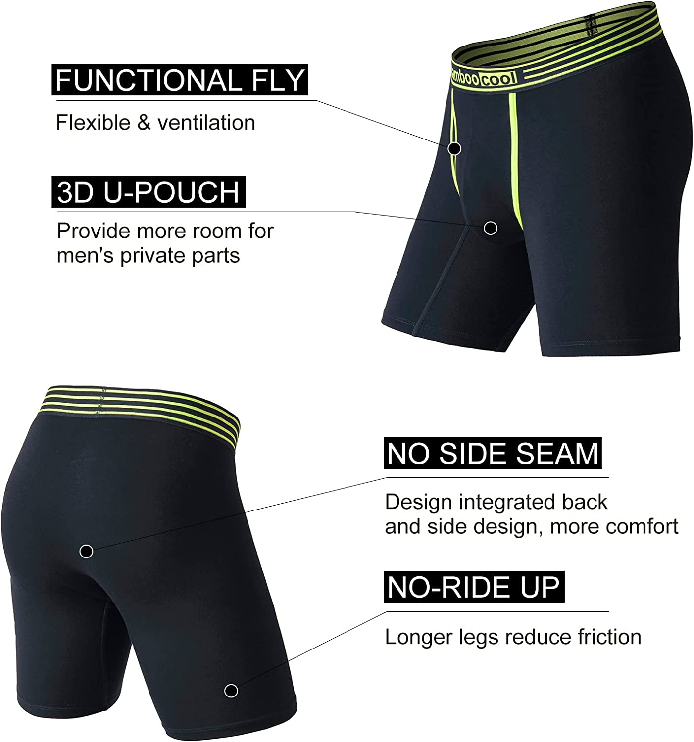 BAMBOO COOL Men's Boxer Briefs No-ride Up Man Boxer Comfortable Breathable Bamboo Viscose Underwear for Men 3 Pack