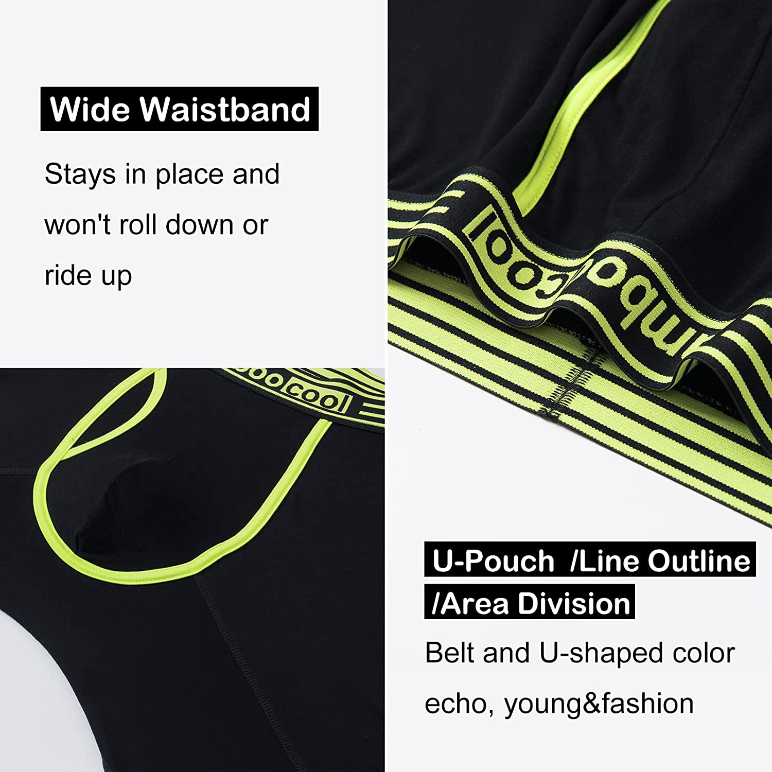 • 【ELASTIC BELT,FASHIONABLE & DURABLE】: The belt of this boxer briefs is very distinctive, and its delicate striped design is young and energetic; And the contrast color echoes the division of the u-shaped area of the crotch, it's a very harmonious appearance design.The belt is wide and elastic, so it won't pinch your stomach or fall off easily. The high-quality belt will remain elastic even after repeated wear, washing and drying.This’s the perfect gift for boyfriend, husband, brother, etc.
