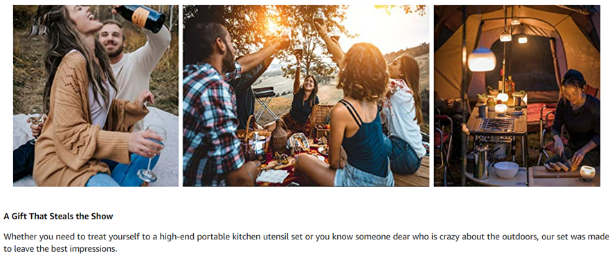 • ✅ Your grilling experience is our main design purpose, The perfect lightweight and ergonomic grips ensure avoiding getting burns and skids when the grilling action. Besides, the end hanging rings design enables easy to hang on everywhere when drying or not in use to save space and keep tidy. Meanwhile, these camping cooking utensils are lightweight, so you can turn or stir with ease and won't get tired quickly.