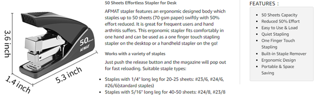 - 【50% EFFORT REDUCED Office Stapler】If hand comfort is your priority, this desktop stapler will do the trick. This desk stapler is ergonomically designed: Fits comfortably in one hand(doubles as a handheld stapler) and staples papers swiftly with 50% effort reduced(support one finger operation), which is ideal for frequent users and hand arthritis suffers without breaking a sweat, especially when stapling thru a thicker bundle of paper.
