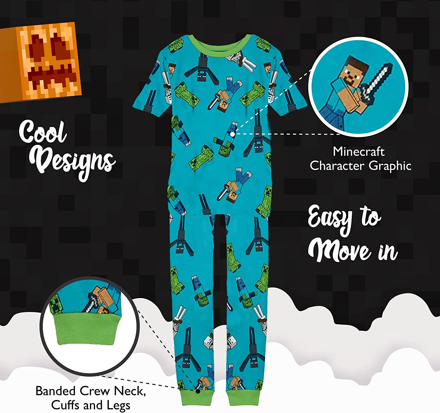 - YEAR-ROUND BOYS’ PAJAMAS: Get your little guy ready for adventures with Steve, creepers, zombies, and more in these fun “Minecraft” boys’ pj’s. He’ll drift off to sleep dreaming about his favorite game. Officially licensed “Minecraft” merchandise