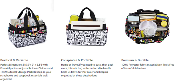 Bag-lady Ultimate Choice - This utility tote bag can be a scrapbook storage box,planner caddy kids art bag,Yarn Tote,Spinning ,teacher tote bag,portable office organizer sewing storage organizer,nursing equipment bag,file tote bag journal notebook tote bag paint & More.