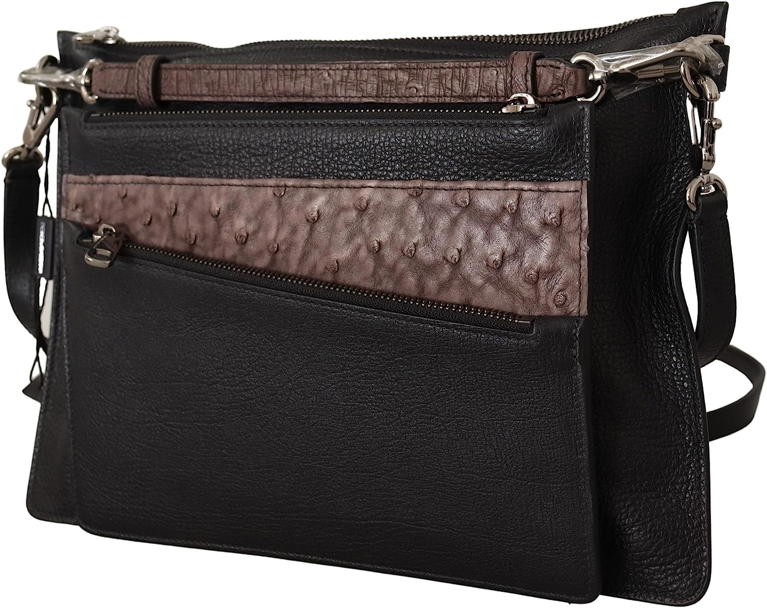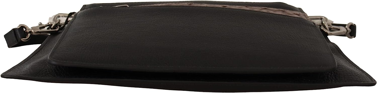 Black Exotic Leather Shoulder Sling Alta Sartoria Bag