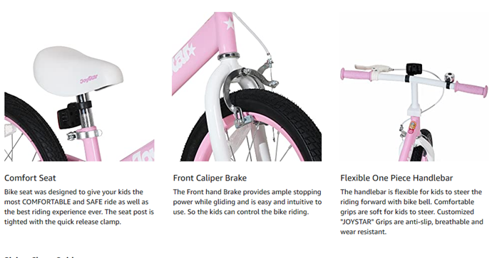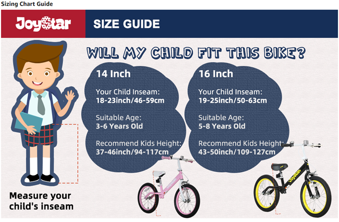 • ADJUSTABLE BIKE - The height of seat and handlebar is adjustable. Built for big kids 5 6 7 8 years old and fitting an inseam of 50-63cm (19-25 inch), JOYSTAR 16 inch balance bike "Striker" is the perfect balance bike for those who want to learn how to ride but haven't had the right opportunity to learn. Big balance bike that is a great transition bike or training bike.
