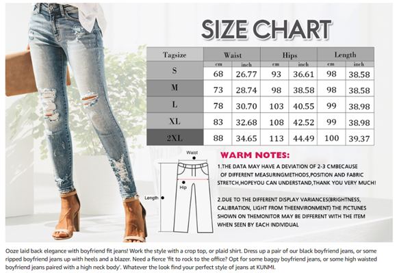 KUNMI Women's Ripped Boyfriend Slim Fit Jeans Frayed Distressed Stretchy Denim Pants