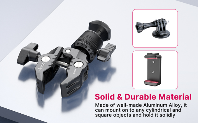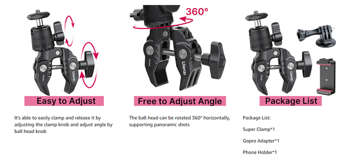 - Package: Super Clamp*1, Gopro Adapter*1, Phone Holder*1.