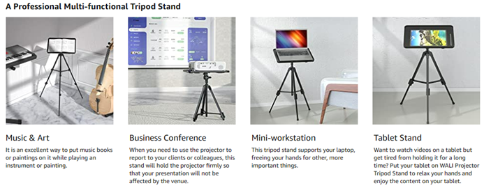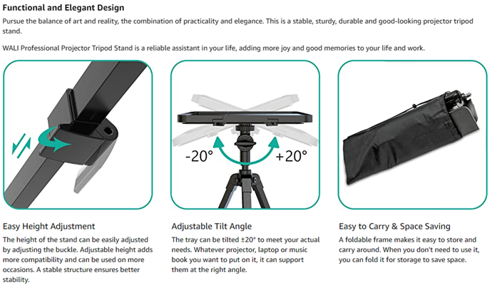 Elegant foldable design. WALI Foldable Projector Tripod Stand is more than foldable for easy storage and transportation. The optimized design also makes you feel more aesthetic during use.