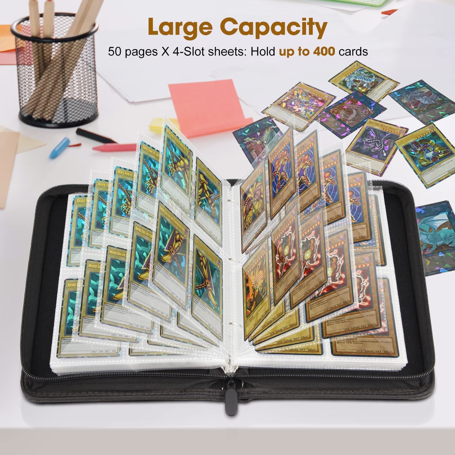 • ? Large Storage Space--- 4-Slot for card album with 50 pages of sleeves can hold up to 400 cards, providing plenty of space to get all your cards organized. (Each pocket can store 2 cards)