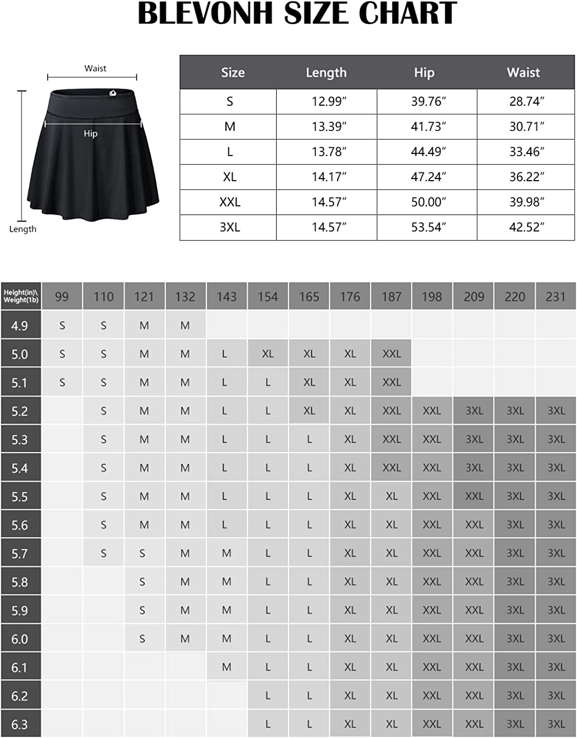 Blevonh Women's Tennis Skort Active Pleated Skirts with Pocket for Running Golf