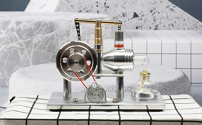 This stirling engine designed reasonable and compact. You can bring it home, school office with convenient in your bag.