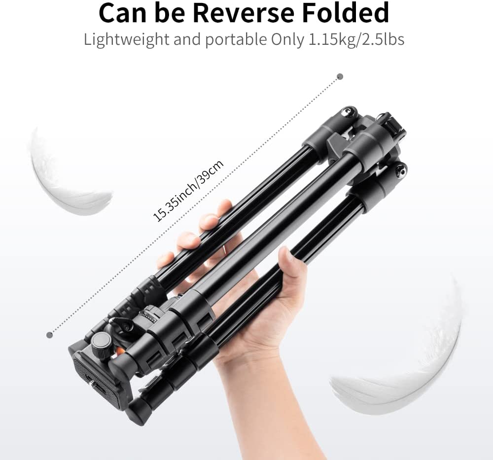 【Lightweight and Portable】4 section leg can adjust tripod height from 20.4''/52cm to 64.1''/163cm; it can be folded to 15.3''/39cm to make it easy to put it in the carrying bag; the net weight with the ball head included is only 2.53lbs/1.15 KG.