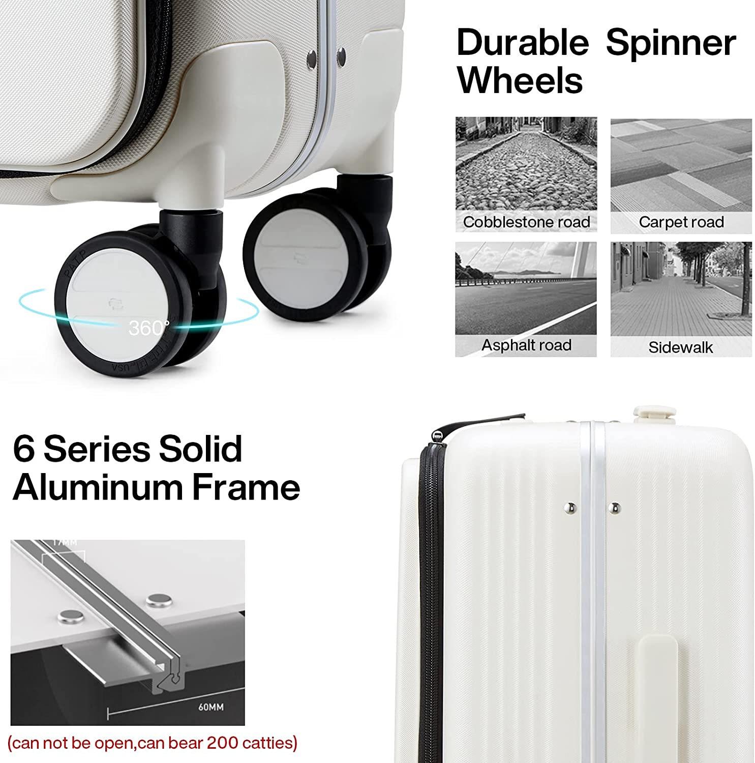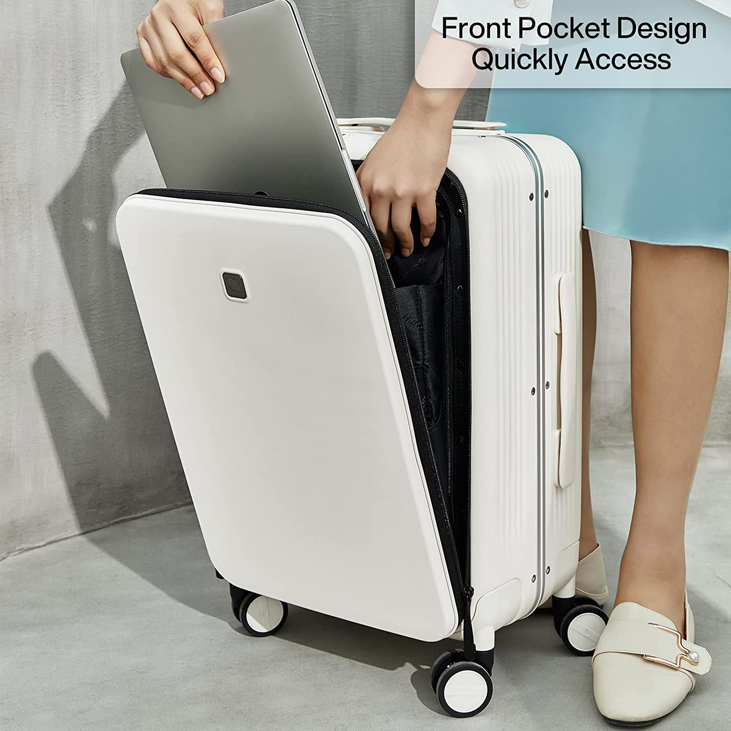 Hanke Upgrade 24" Checked In Suitcase with Front Laptop Pocket, Rolling Luggage with Spinner Wheels and TSA Lock,Aluminum Frame PC Hardside Travel Luggage for woman man, 24-inch Smoke White