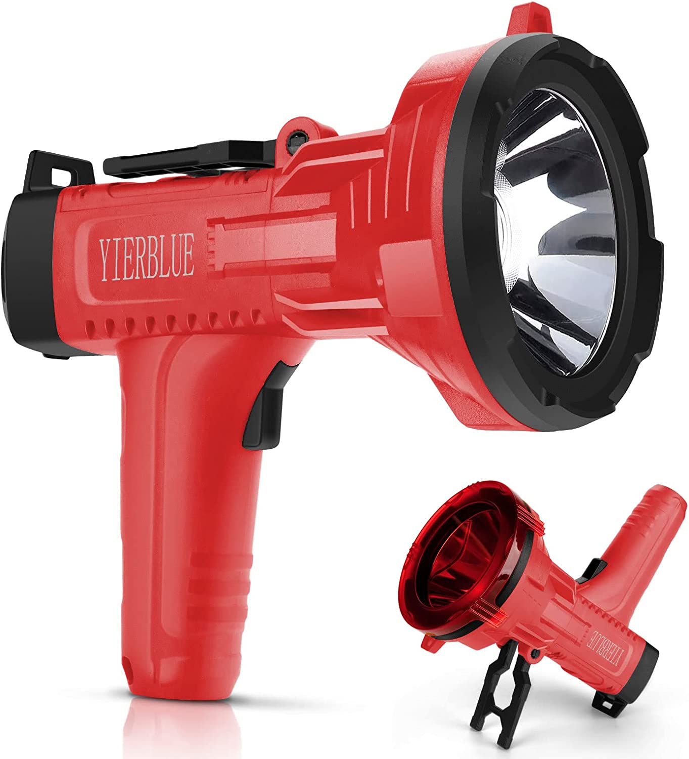 YIERBLUE Rechargeable Spotlight Flashlight 120000 High Lumen, IP66 Waterproof Spot Lights Outdoor Handheld, 20 Hours Long Lasting LED Large Flashlight with Foldable Stand and Detachable Red Filter