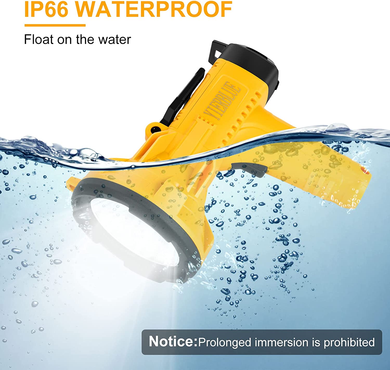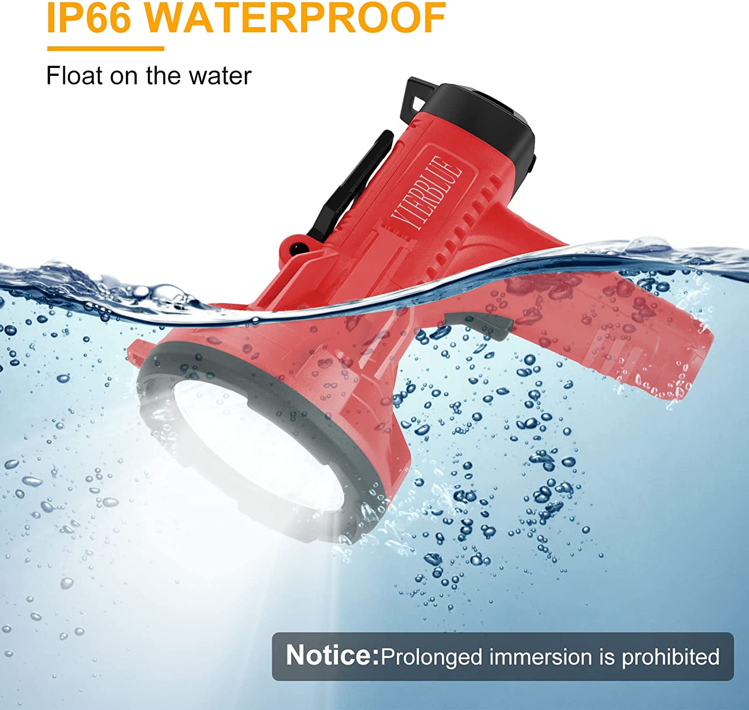 • IP66 WATERPROOF & IMPACT RESISTANT: Don't worry about falling this waterproof spotlight into the water accidentally, it will float on the water(Prolonged immersion is prohibited). Made of impact- resistant ABS and PC, rugged body withstands dropping from up to 6 feet.