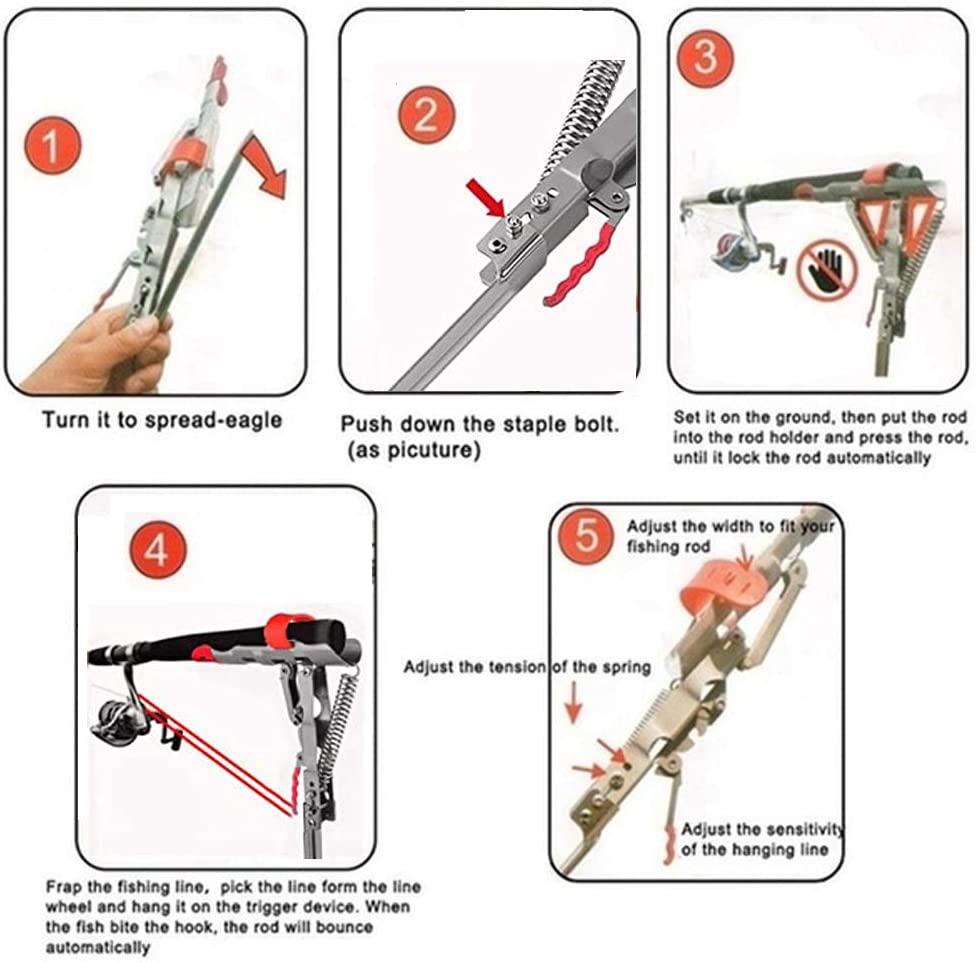 • 【Automatic Fishing Rod Holder】 The automatic spring fishing rod holder has high sensitivity. When the bait is bitten by the fish, the automatic spring device is triggered. The fishing rod holder immediately automatically pulls up the fishing rod without manual operation, freeing your hands and enjoying the fun of fishing easily!