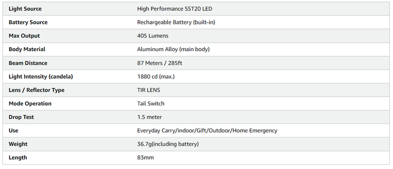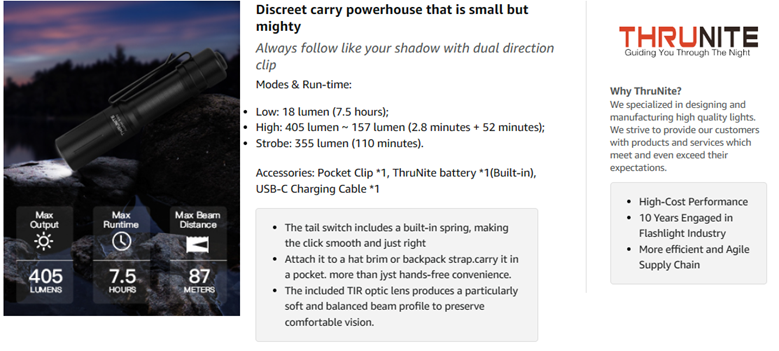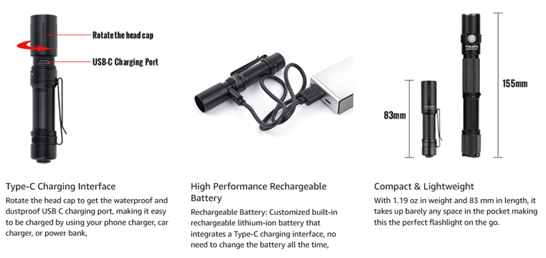 Included Components | ThruNite battery *1(Built-in), USB-C Charging Cable *1, Pocket clip *1 |