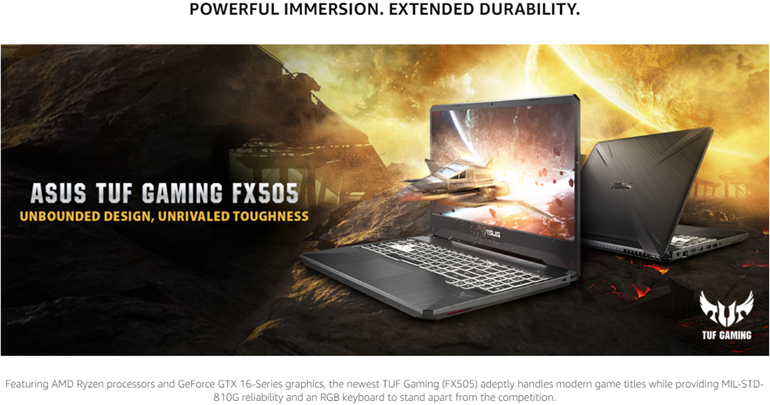 Asus TUF Gaming FX505 is a powerful Windows 10 Gaming Laptop that combines gaming performance with up to a narrow bezel IPS-Type panel and an extended lifespan, thanks to its patented anti-dust cooling (ADC) system. Equipped with NVIDIA GeForce GTX 16-series graphics, and a quad-core Ryzen 5 processor, FX505 is able to play the latest games and multitask With ease. FX505 features one of the fastest Wi-Fi standards available — The latest Intel Wave 2 Wi-Fi 5 (802.11AC) boasts data transfer rates of up to an incredible 1.7Gbps. To top it all off, it's backlit gaming Keyboard is rated at 20-million keystroke durability. The actual transfer speed of USB 3.0, 3.1 (Gen 1 and 2), and/or Type-C will vary depending on many factors including the processing speed of the host device, file attributes and other factors related to system configuration and your operating environment.