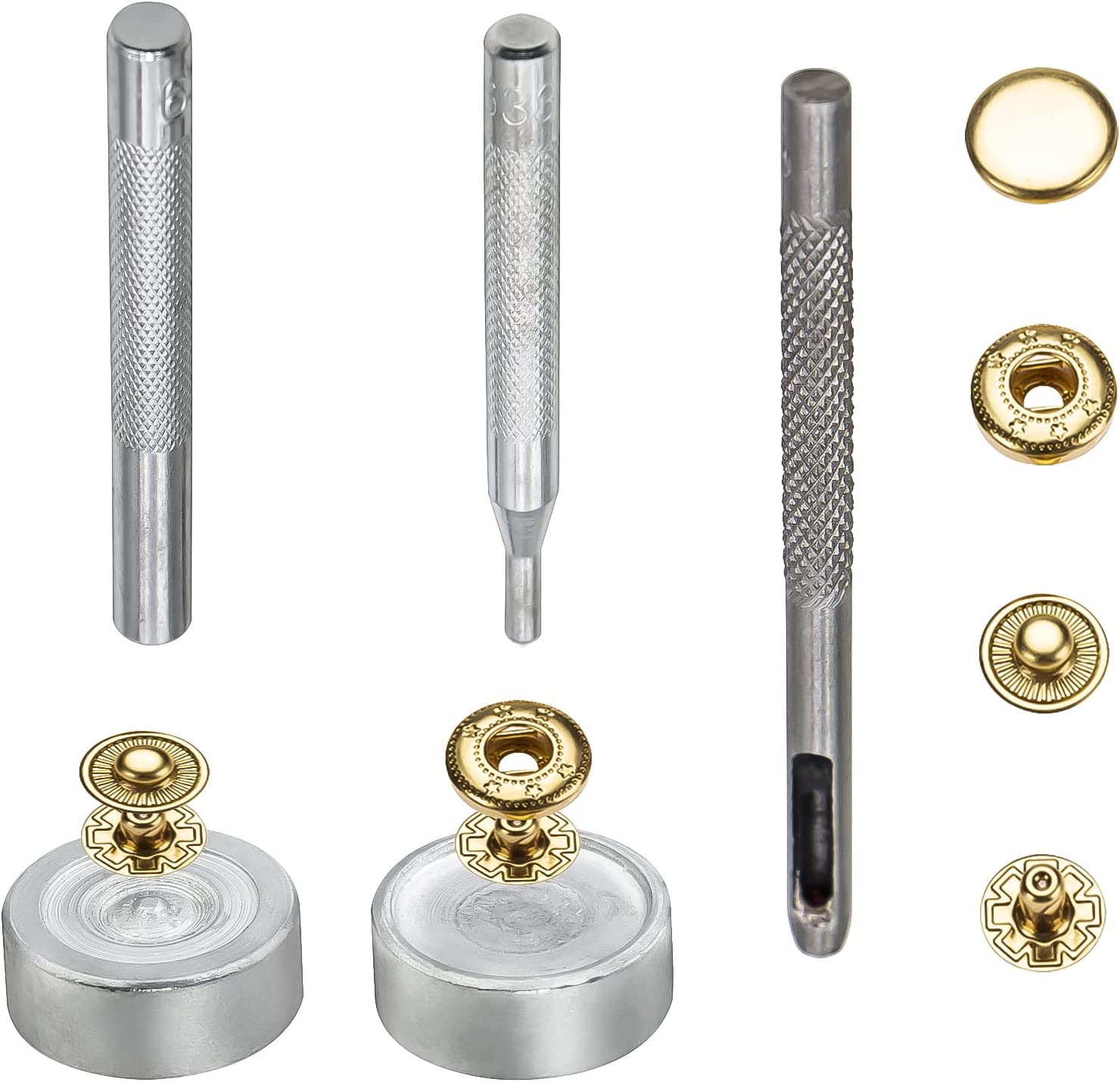 Complete Installation Kit: The snap fasteners kit includes a base, a punch tool, a point install tool, a concave install tool and an additional awl (The awl is more suitable for punching the fabric).